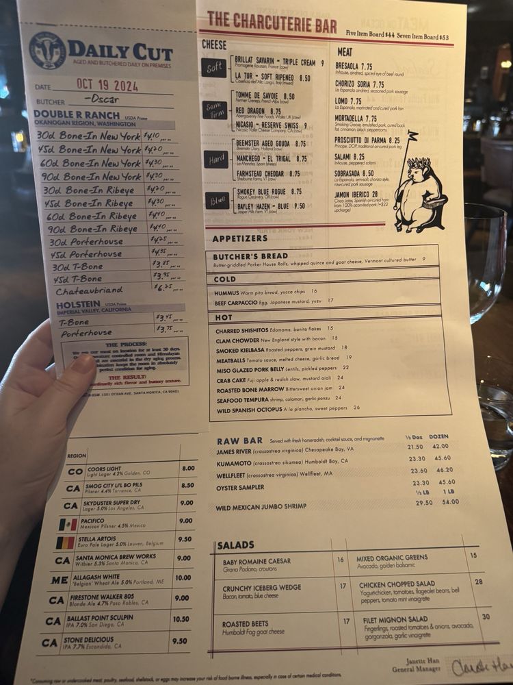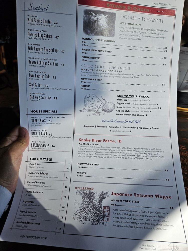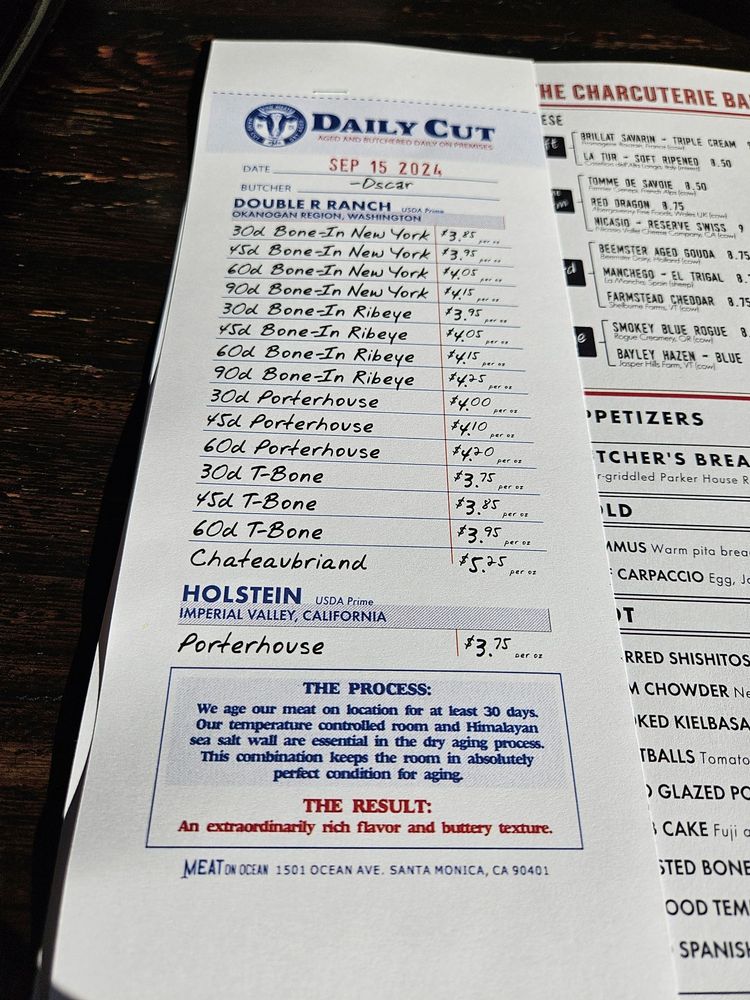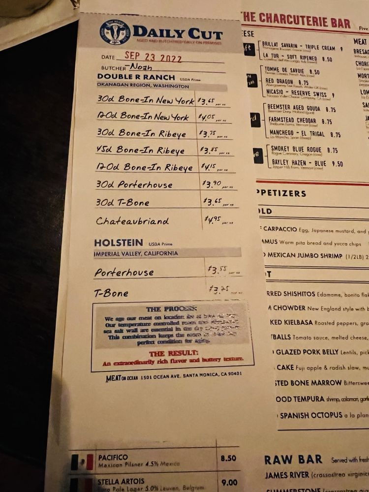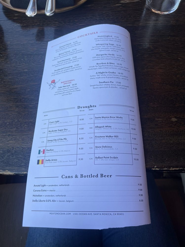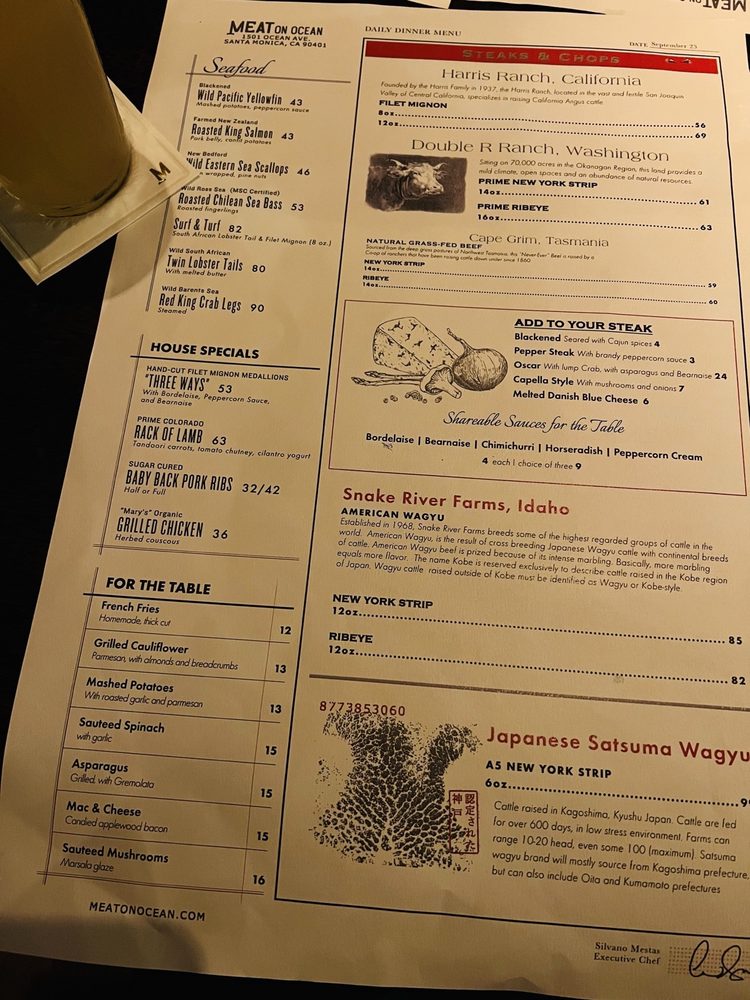 Meat On Ocean, located in Santa Monica, is a trendy, classy steakhouse offering a variety of options for its diverse clientele. From keto to pescatarian choices, this restaurant caters to different dietary preferences. Customers rave about the impeccable service and delicious food, with highlights like the octopus, bone marrow, porterhouse, and chimichurri. The extensive wine selection and cocktail choices add to the dining experience. The beachfront view and spacious interior create a pleasant atmosphere for patrons. However, some note that the food quality may not fully justify the prices. Overall, Meat On Ocean is a must-visit spot for a memorable dining experience by the ocean.
